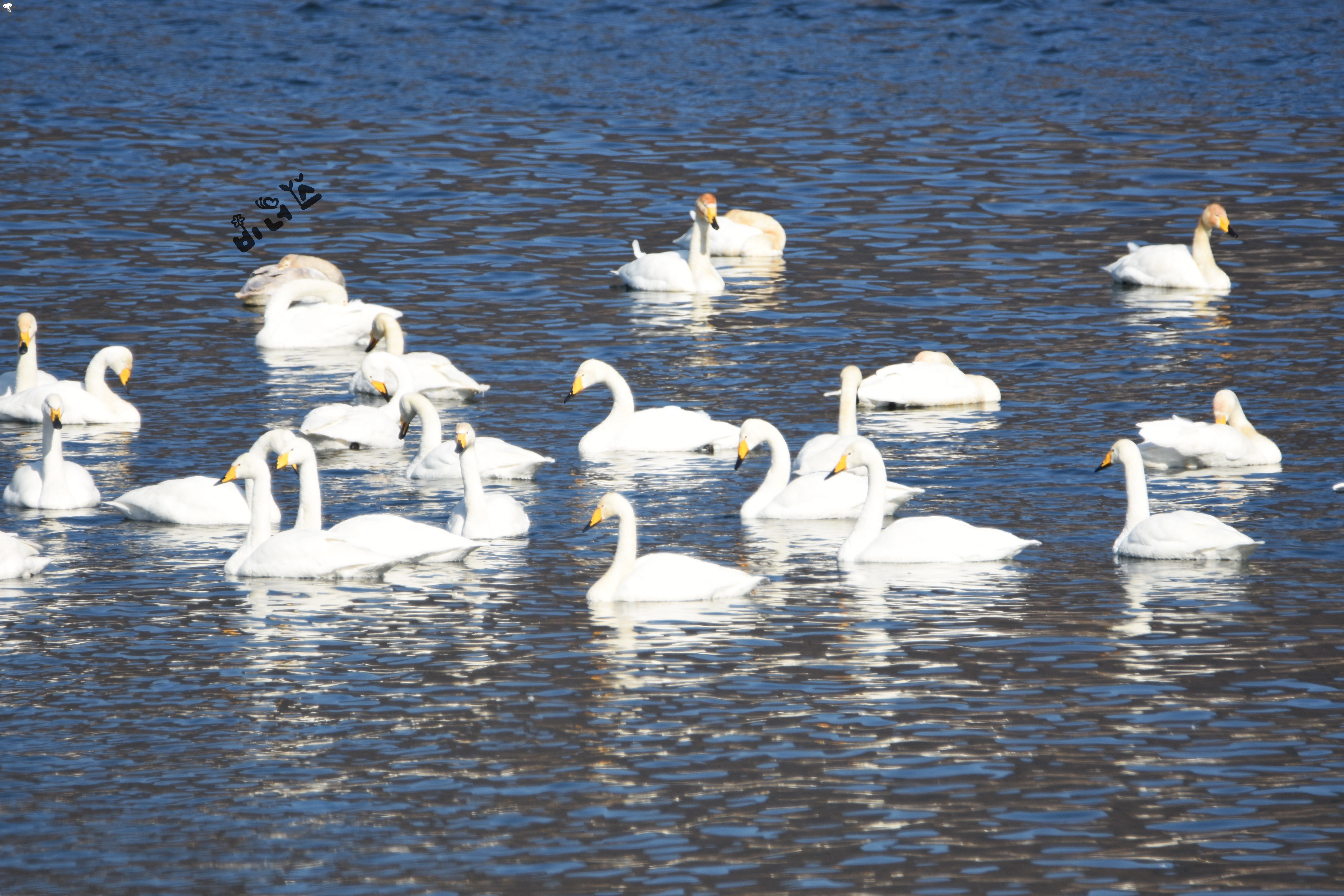 #부리 노란색 부분이 고니보다 넓고 뾰족한 형태이며, 흑고니와 달리 헤엄칠때 목을 세웁니다.