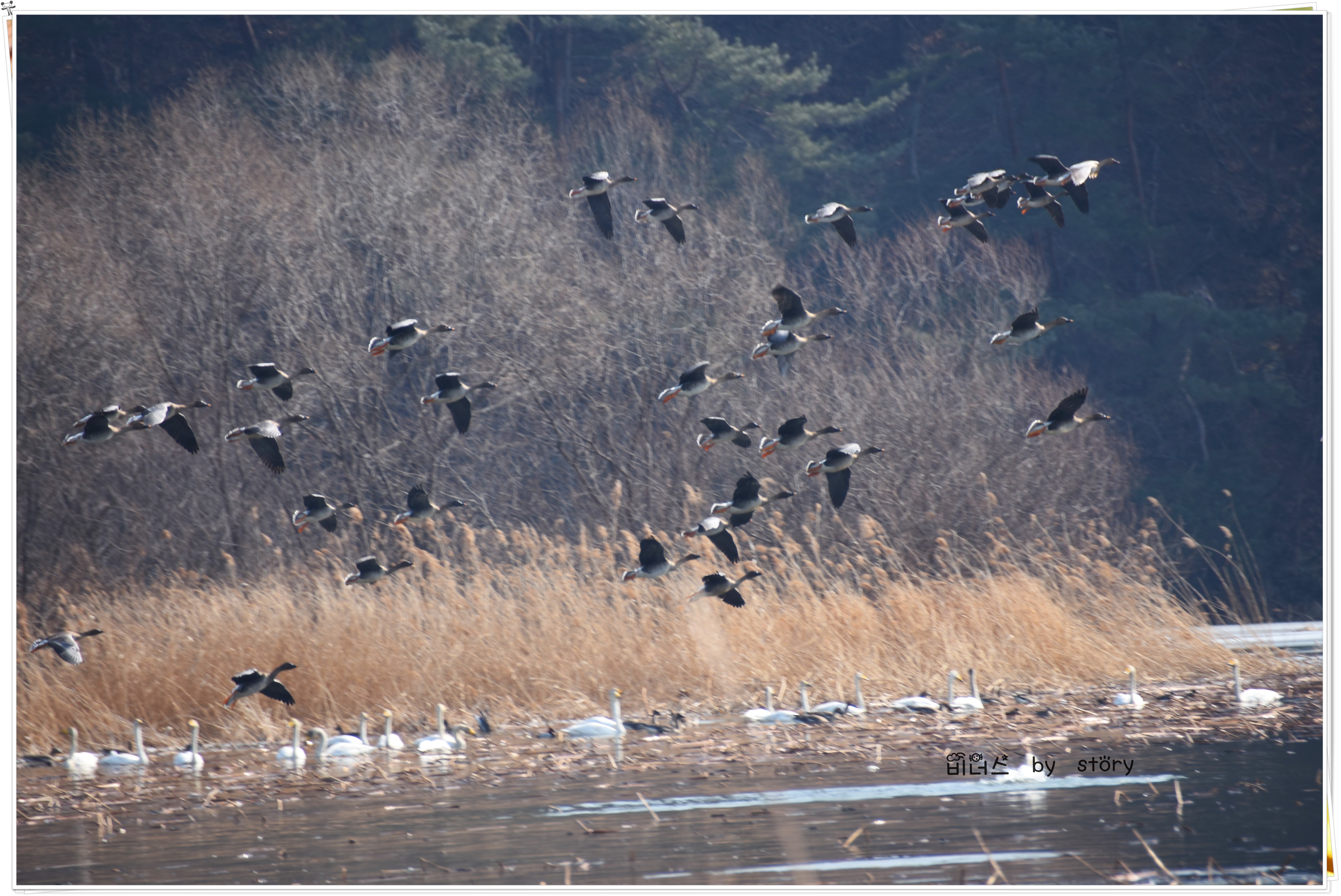 #겨울 철새인 기러기떼 입니다.
